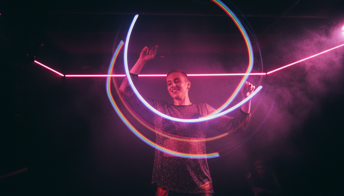 Cápsulas ViBe Balance-Energy espalhadas sobre superfície escura com reflexos pride